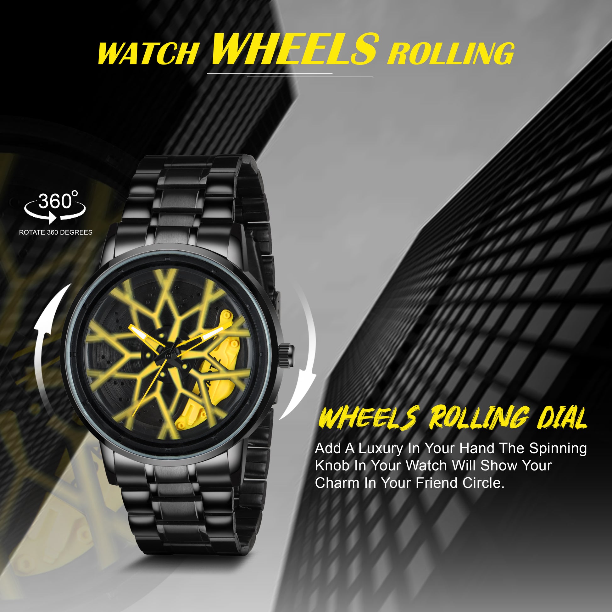 MotionX Spinning Car Wheel Dial Chain Strap Analog Watch for Men